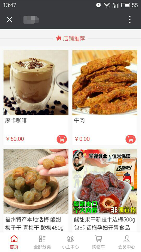 列示,且在前臺(tái)“店鋪推薦”中瀏覽購(gòu)買,參見(jiàn)下圖: