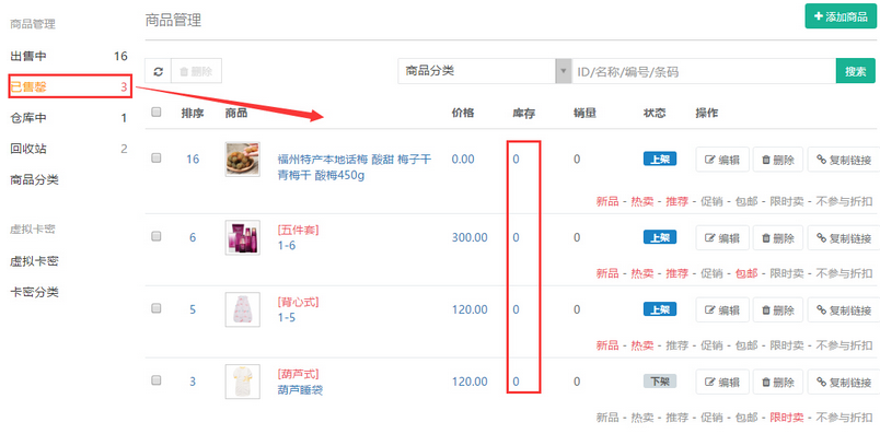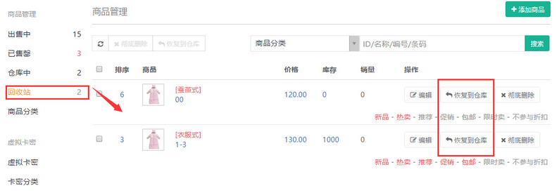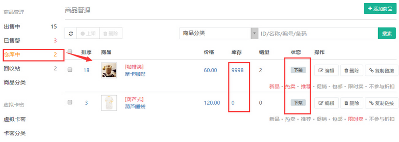 ,則商品將徹底刪除,如需再次出售則需要重新添加商品。
