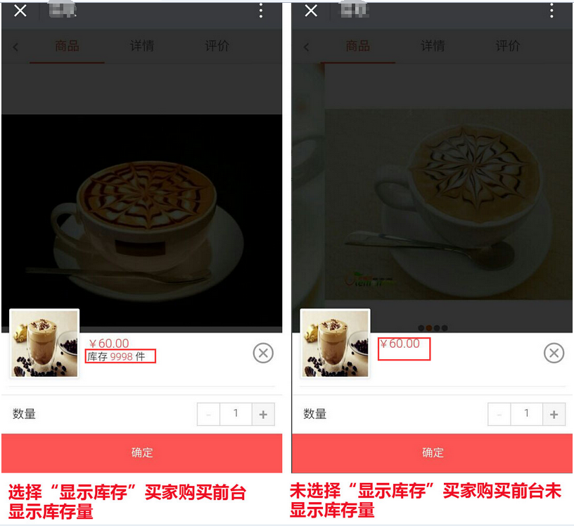 點(diǎn)擊選擇“顯示庫存” ,買家直接購買商品或加入購物車時(shí)可查看到庫存量,反之則看不到,參見下圖: