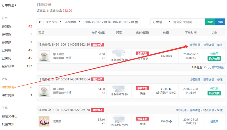 聆科微商城·處理買家申請(qǐng)退款、退貨、換貨的維權(quán)訂單
