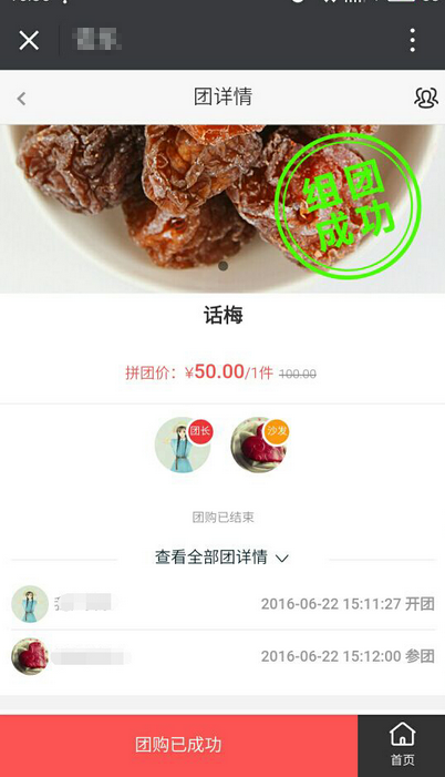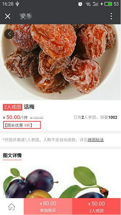 溫馨提示:作為開團的團長不能同時享受積分抵扣的營銷,只能享受團長優(yōu)惠營銷