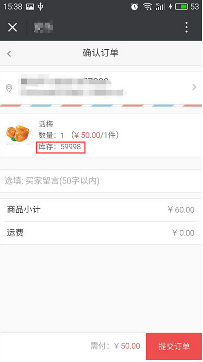 2、勾選“顯示庫存”買家購買或開團此商品確認(rèn)訂單時,即可查看商品的庫存情況,反之則不顯示,參見下圖: