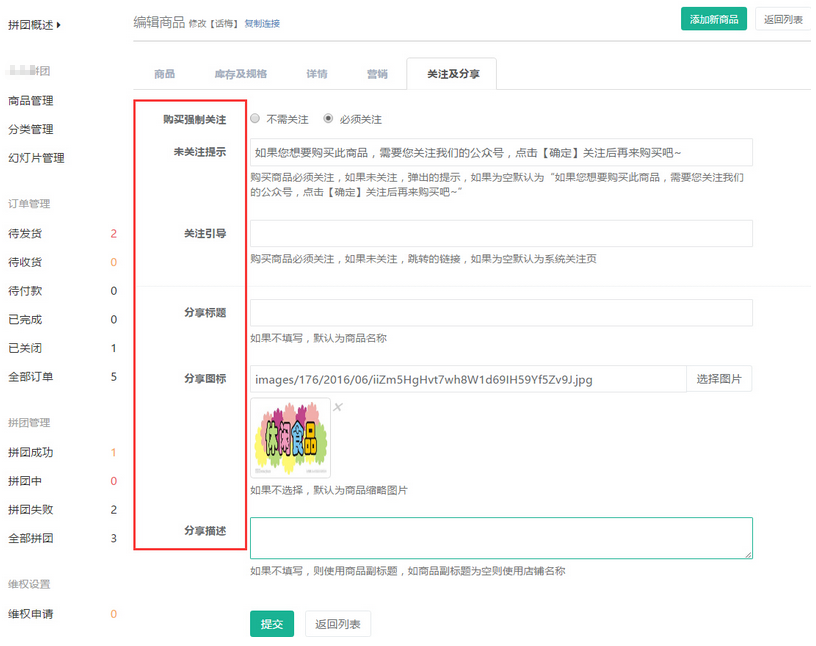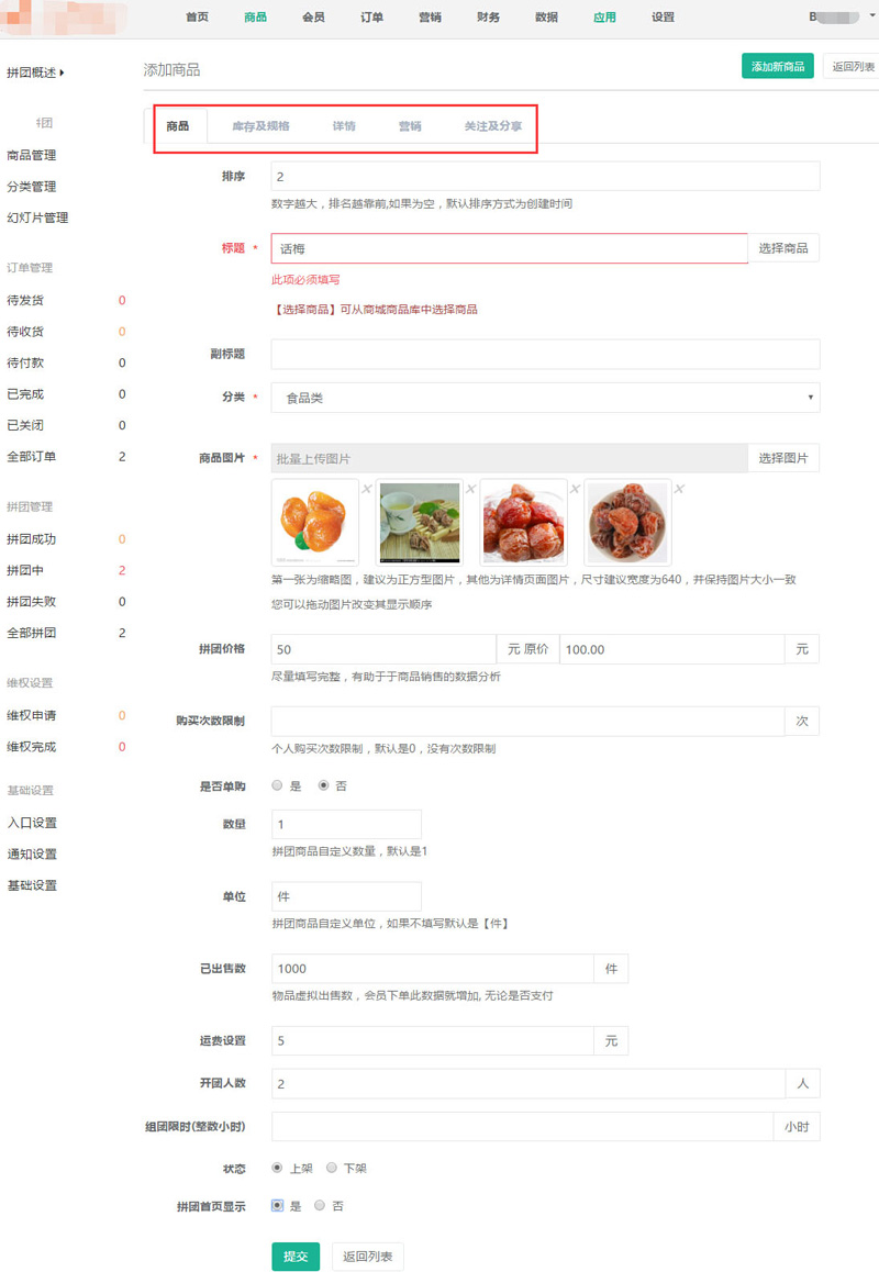 聆科微商城·設(shè)置拼團的商品和分類