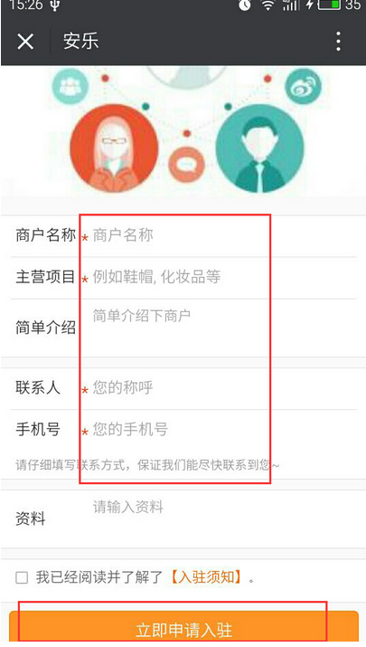 點擊【多商戶】直接填寫申請資料點擊【立即申請入駐】即可,參見下圖: